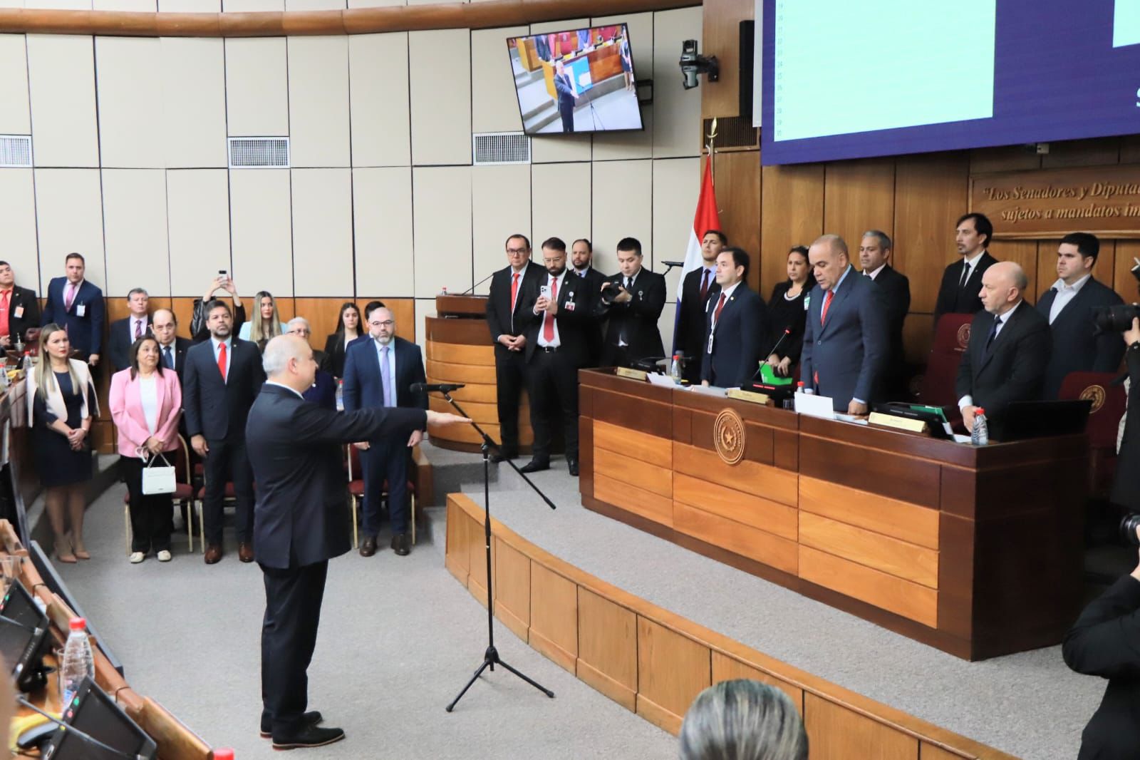 El acto fue presidido por el Presidente de la Cámara de Senadores, Senador Dr. Basilio Núñez. Acompañaron la ceremonia el Presidente del Consejo de la Magistratura, Dr. Gerardo Bobadilla, junto a los miembros Dra. Alicia Pucheta, Dr. Enrique Berni y el Senador Dr. Edgar López.