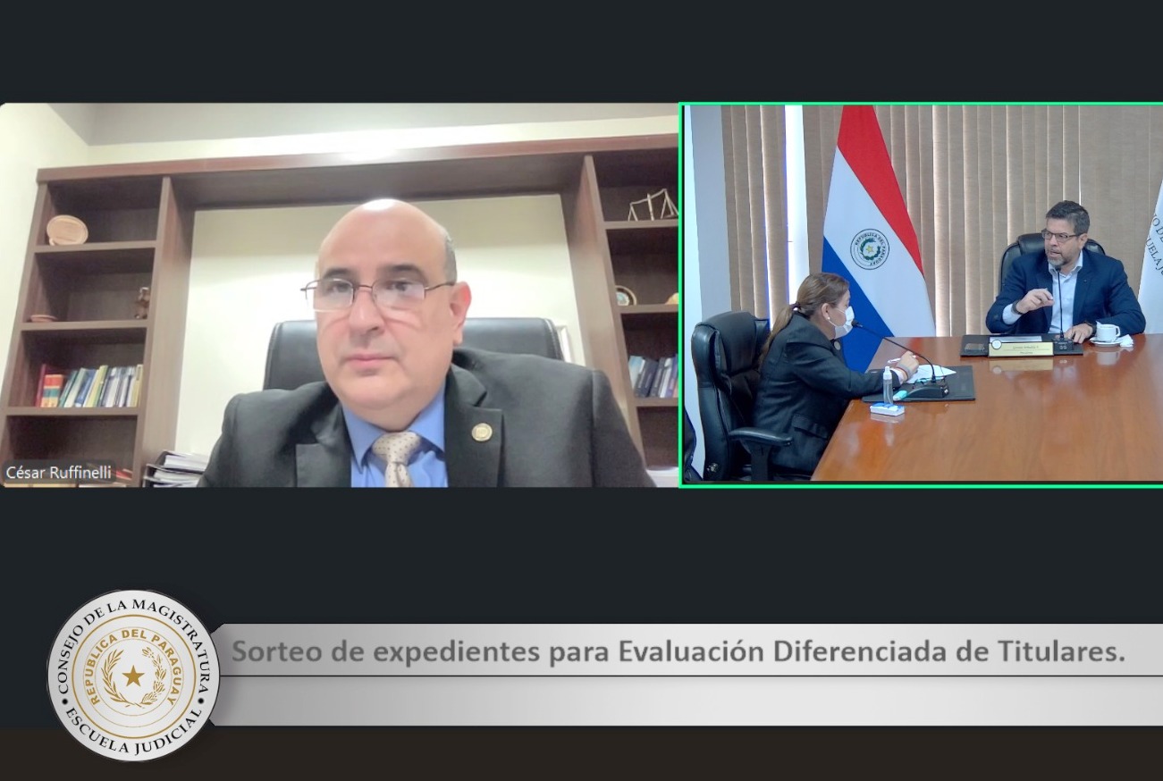 La selección aleatoria de expedientes estuvo encabezada por el presidente del Consejo de la Magistratura, Dr. Gerardo Bobadilla Frizzola, mientras que el miembro Dr. César Ruffinelli participó de manera telemática. Con esta instancia, se da inicio formal a la fase de evaluación cualitativa del desempeño de los titulares.