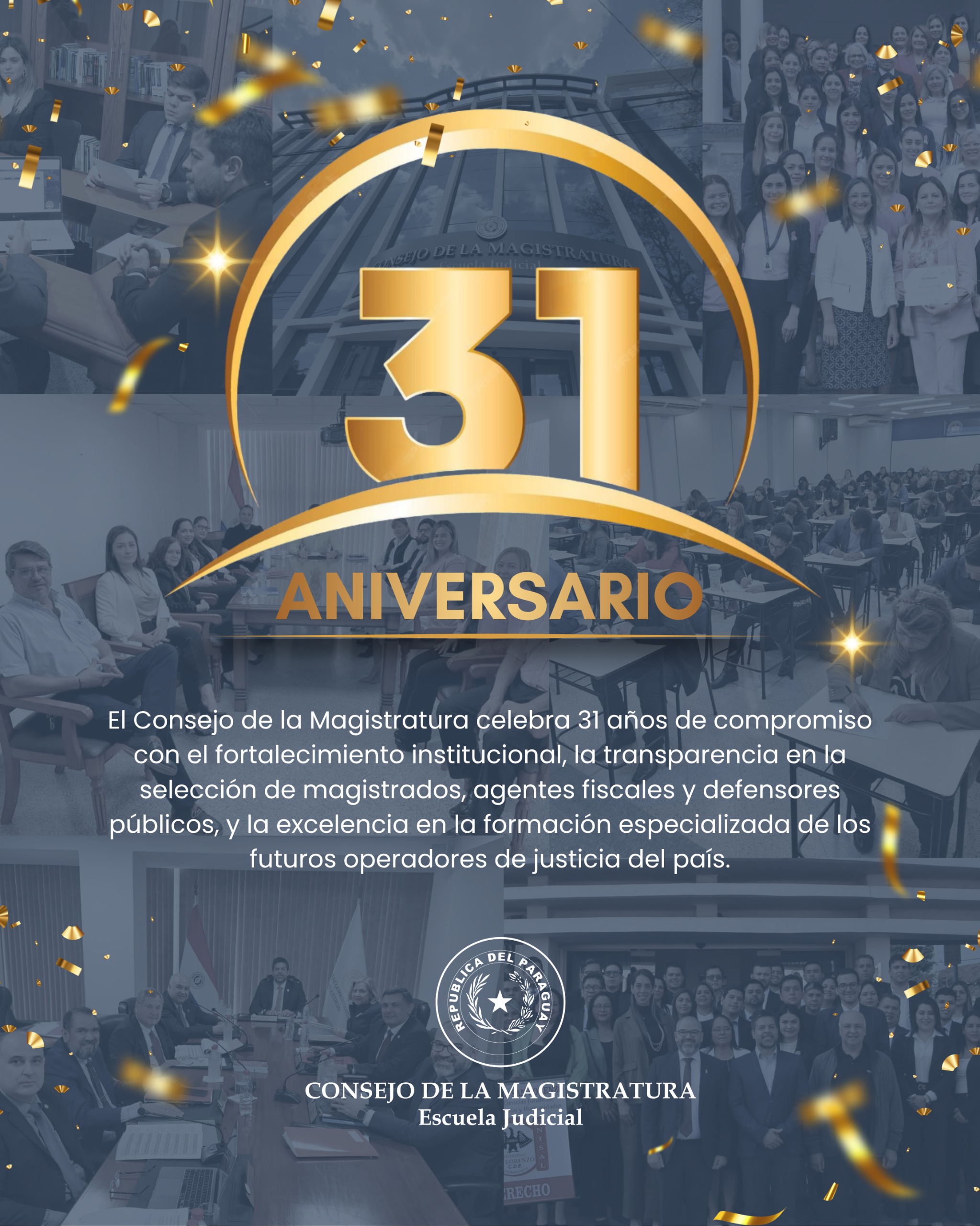 En este 31º aniversario, el Consejo de la Magistratura celebra su historia con la mirada firme en el futuro. Cada avance refleja el compromiso institucional con la transparencia, la calidad y el servicio al ciudadano, pilares esenciales para el fortalecimiento de la democracia y del Estado de Derecho en Paraguay.