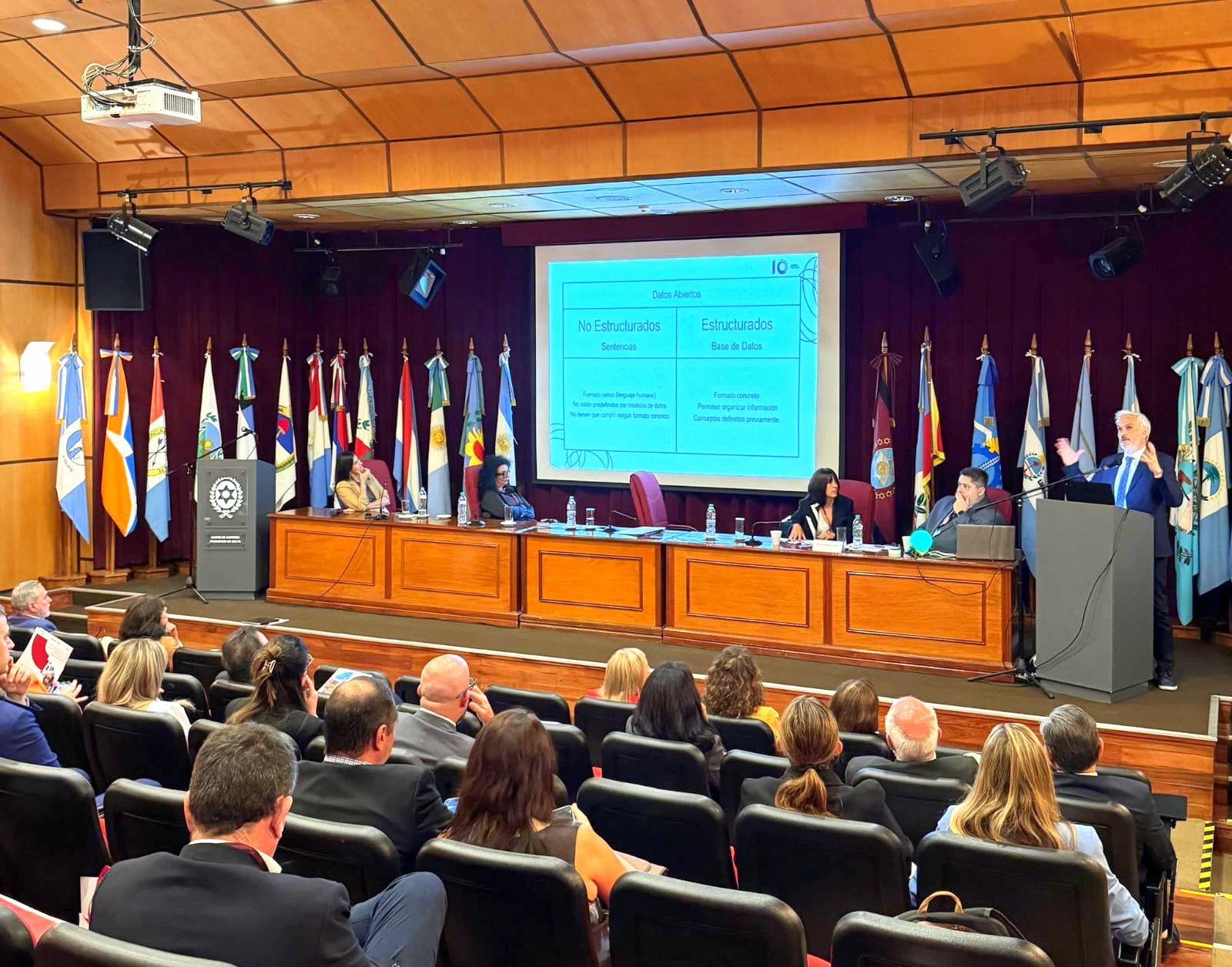 En la primera jornada se desarrolló el conversatorio sobre “Propuestas innovadoras en el procedimiento de selección de magistrados y herramientas de IA”, moderado por el presidente del Consejo de la Magistratura de Salta, Dr. José Gabriel Chibán, con la participación de la presidenta del Tribunal Superior de Justicia, del Consejo de la Magistratura y del Jurado de Enjuiciamiento de Río Negro, Dra. María Cecilia Criado.