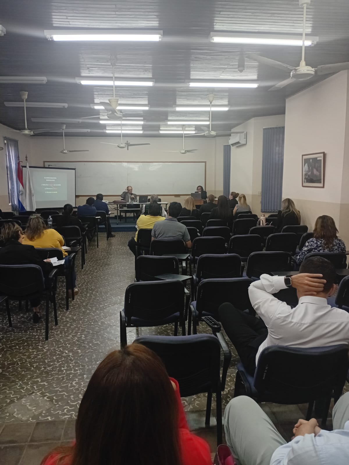 La actividad académica, que convoca a magistrados, fiscales, defensores públicos y abogados, se desarrolló de manera presencial desde el Aula Magna de la Facultad de Teología de la Universidad Católica “Nuestra Señora de la Asunción”, ubicada en el barrio Santa Librada de la Capital, y fue transmitida de forma virtual y simultánea para las sedes judiciales de Asunción, Paraguarí, Caacupé, Villarrica, Pilar, Santaní, Ciudad del Este, Pedro Juan Caballero y Salto del Guairá.